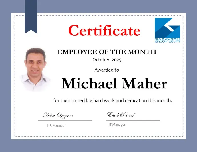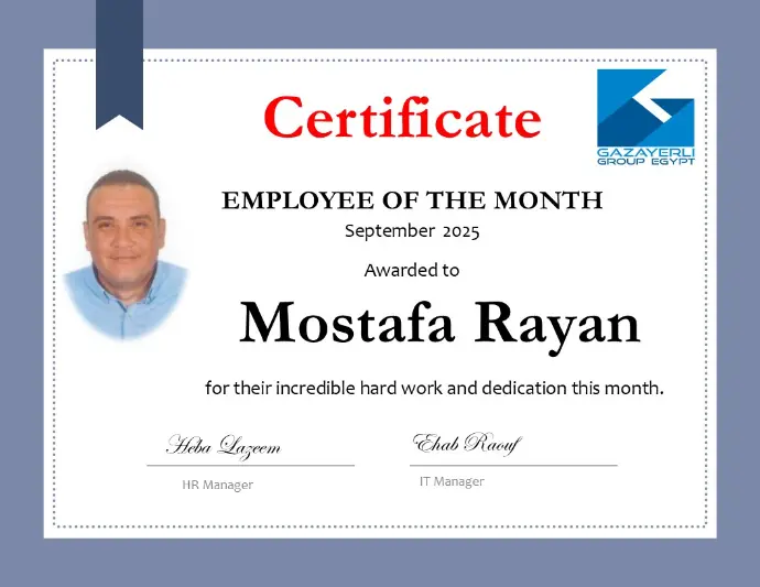 At Gazayerli Group, we celebrate excellence, dedication, and the impact of going the extra mile. The Employee of the Month initiative is our way of recognizing team members who demonstrate outstanding performance, commitment, and a positive attitude in their work.